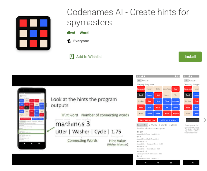 From board games to sports games, here's why games bring people together. Using the spymaster's key to look at your words gets annoying. I need the physical game on hand to play. Looking for free word scramble games you can play to keep your mind and your vocabulary sharp? Clue generator for the game codenames that provides a list of potential clues, numbers and associated target words, all with tensorflow.